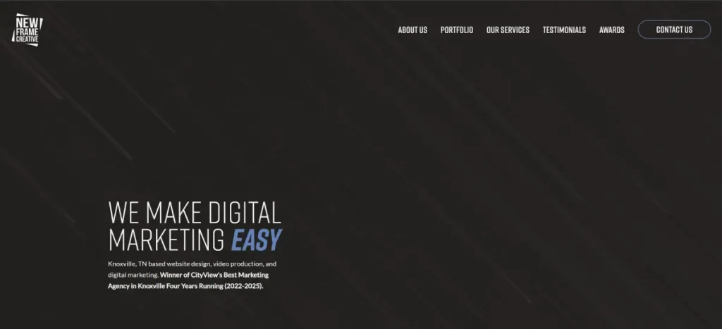 New Frame Creative stands out among Knoxville web design companies for its brand-first, design-led approach. Based in Knoxville, the agency is often considered by businesses searching for web designers near me who want their website to feel intentional, cohesive, and story-driven rather than purely functional.