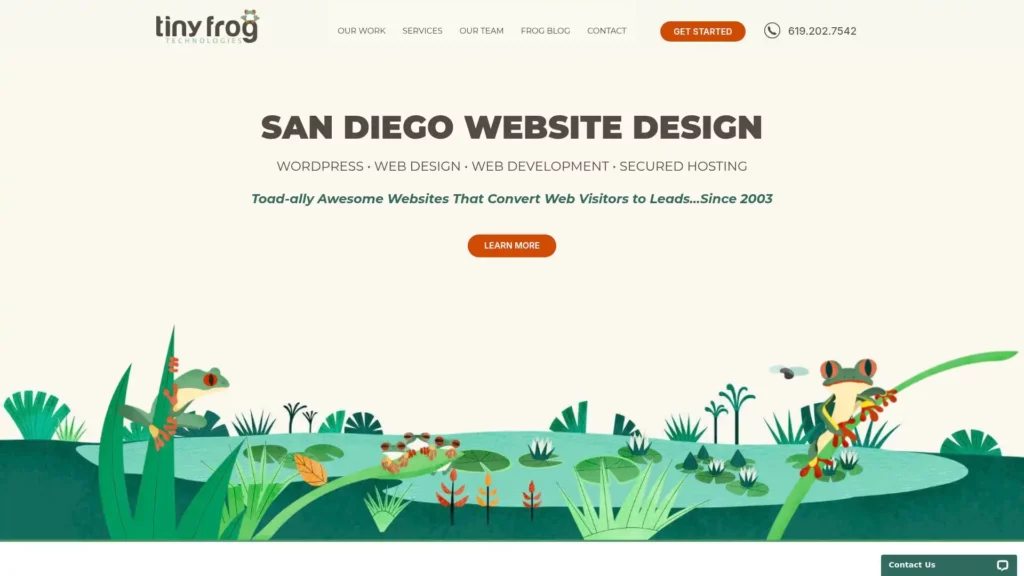 Tiny Frog Technologies ranks #20 among San Diego web design agencies for its strong specialization in WordPress development and ongoing website management. Unlike agencies that split focus across many platforms, Tiny Frog has built a reputation around creating, maintaining, and optimizing WordPress websites for long-term stability.