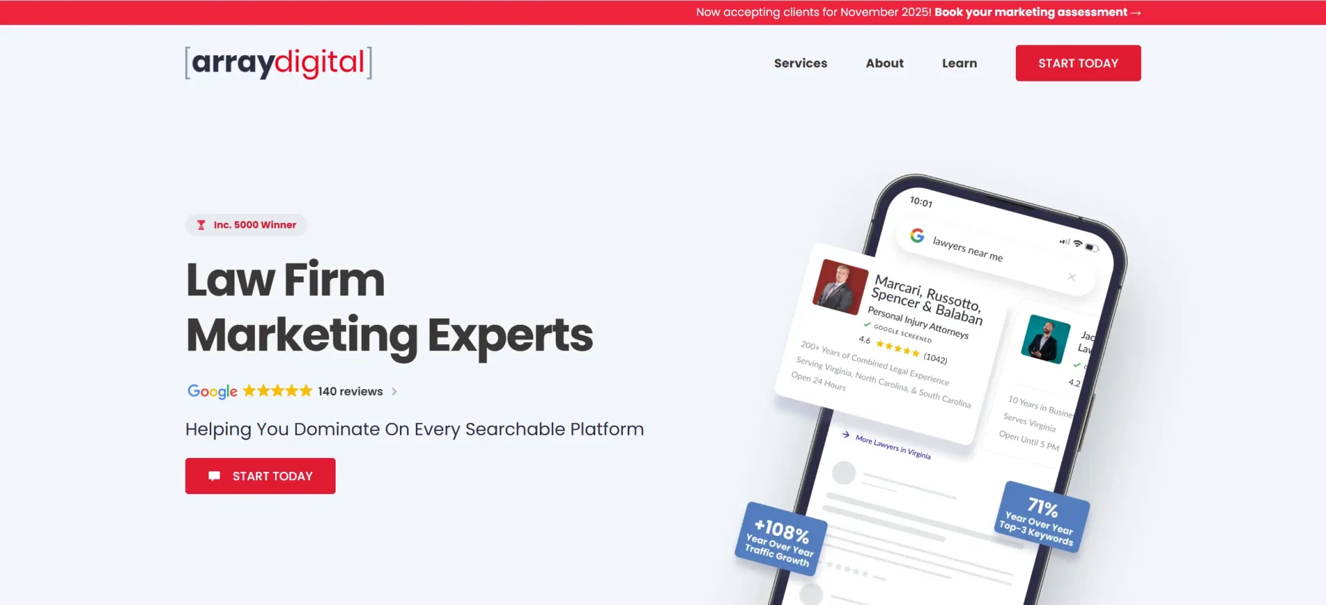 With nearly a decade of experience, Array Digital’s team delivers high-impact campaigns that blend data, storytelling, and design. Their integrated service model ensures that PR strategies align perfectly with web development, advertising, and social engagement efforts — creating a cohesive brand experience across all digital channels.