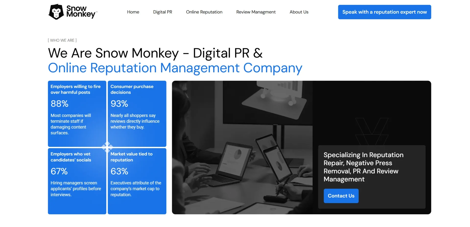 Snow Monkey ranks #14 among the top Digital PR agencies in 2025 for its specialized expertise in online reputation management, Digital PR, and review management. The agency helps businesses of all sizes strengthen their online presence by controlling narratives, improving customer sentiment, and securing positive media exposure across multiple platforms.