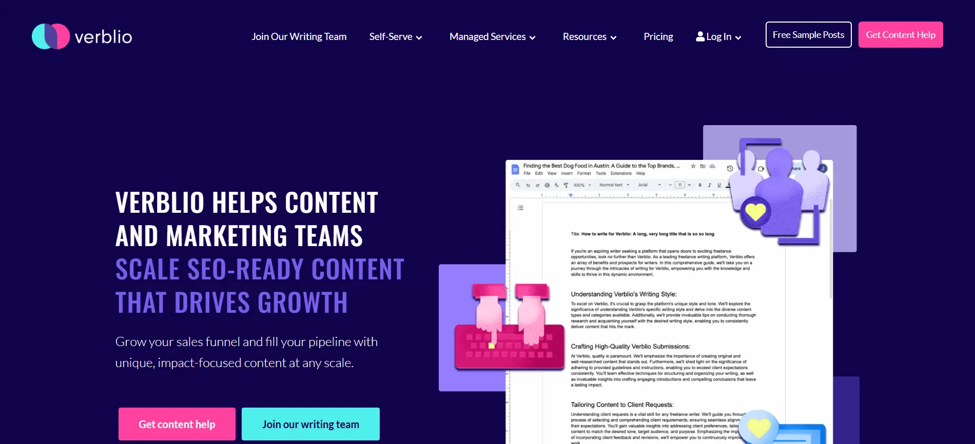 Verblio is a content marketing agency with a unique twist: they combine technology with a large pool of expert writers to deliver scalable content solutions. Established over 14 years ago, Verblio has become a leader in providing custom-written content for businesses of all sizes, from startups needing blog support to enterprises requiring ongoing editorial production.