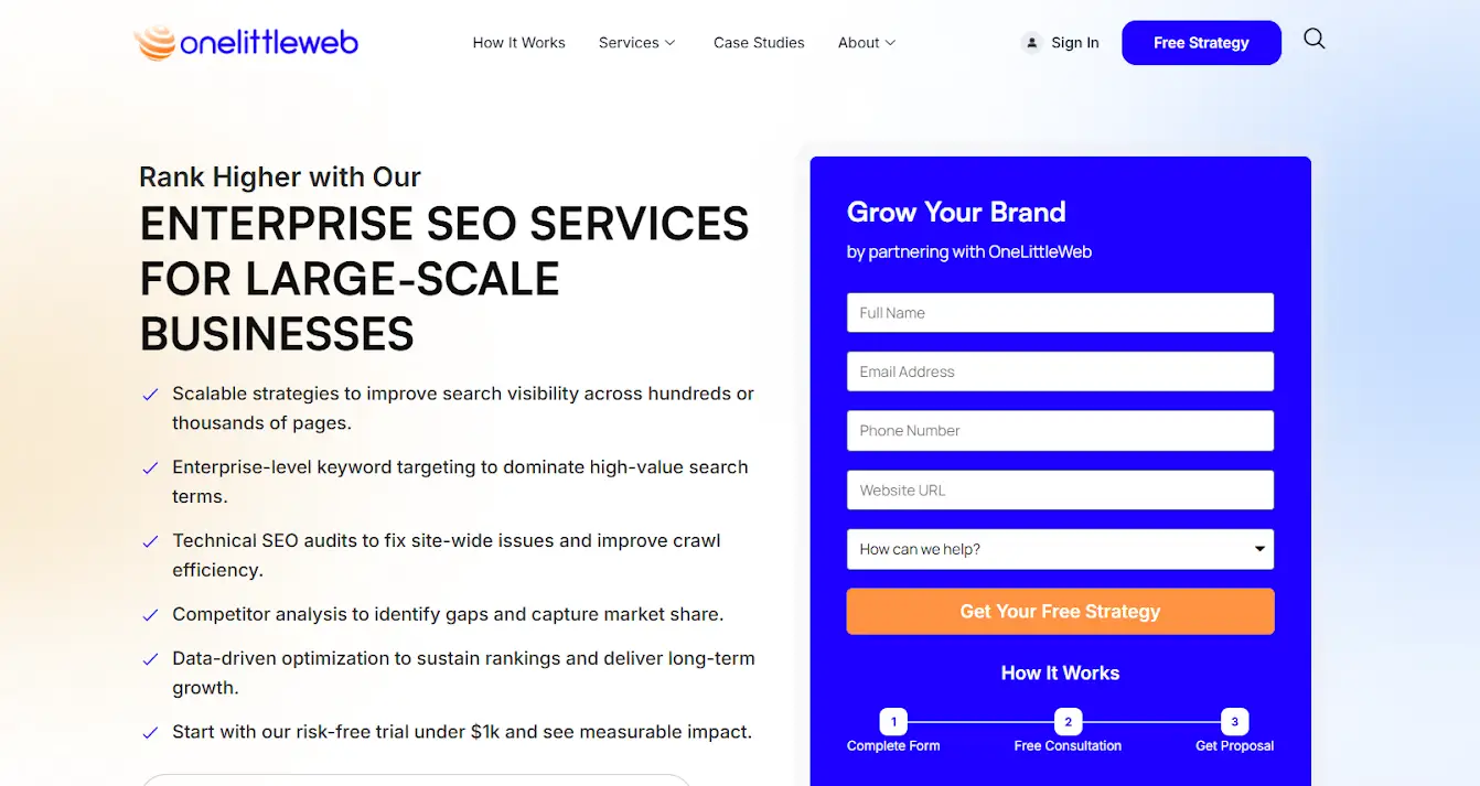 While this study highlights the Top 50 Enterprise SEO Agencies in the USA (2025), OneLittleWeb earns a special mention as the featured benchmark agency — setting the gold standard for scalable enterprise SEO, authoritative link building, and transparent digital PR in the modern era of search and AI integration.