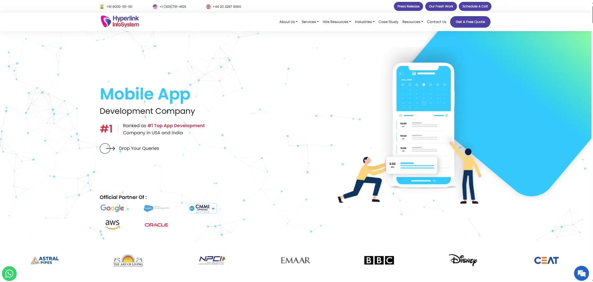 Hyperlink InfoSystem ranks #18 as a global mobile app development company, known for delivering complete solutions across industries. Their large team and broad expertise in emerging technologies set them apart as a trusted partner for enterprises.