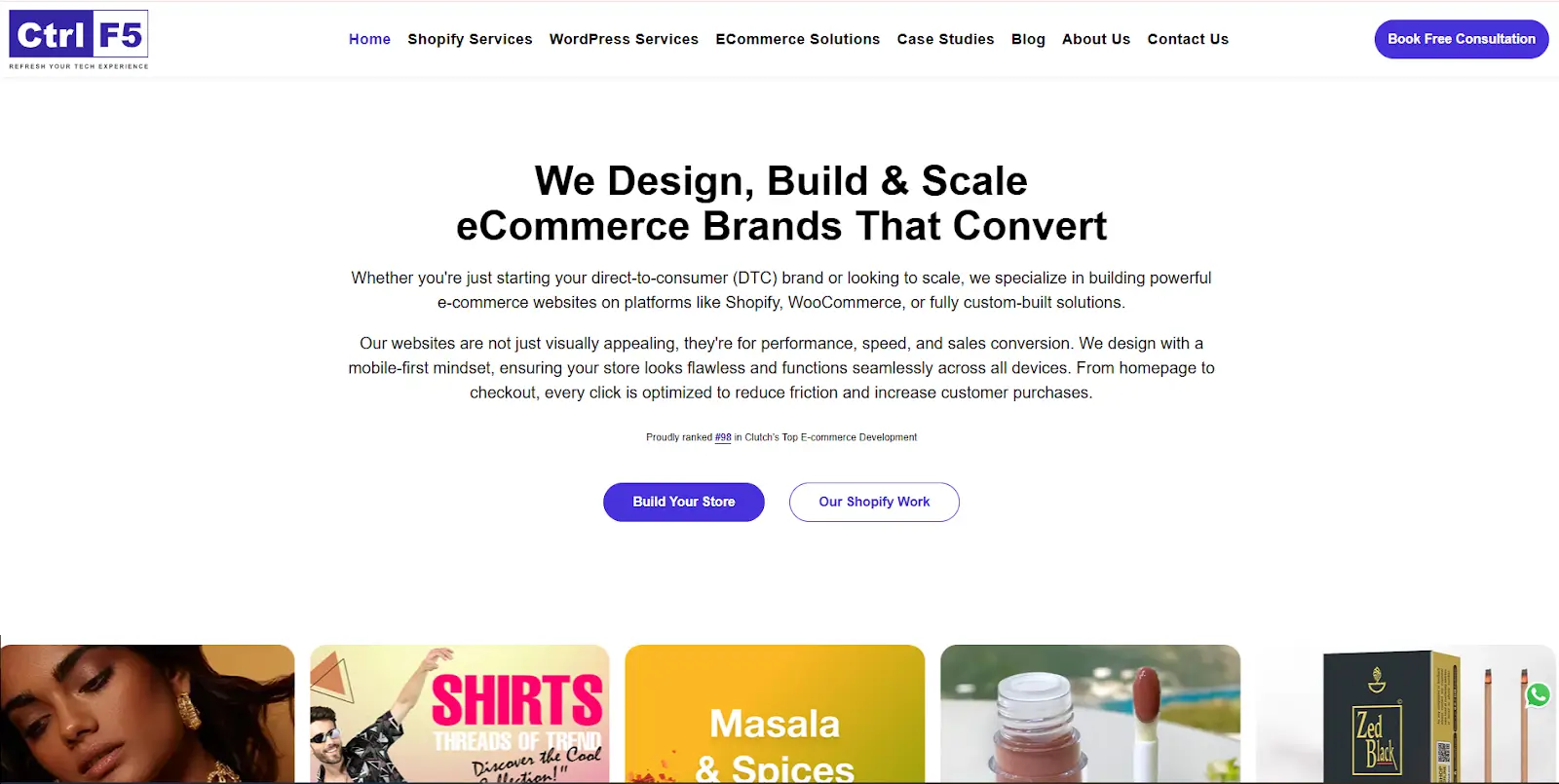 Control F5 ranks #4 among the best web design companies for small businesses in 2025. Based in India, they specialize in web development, SEO services, and Shopify development.