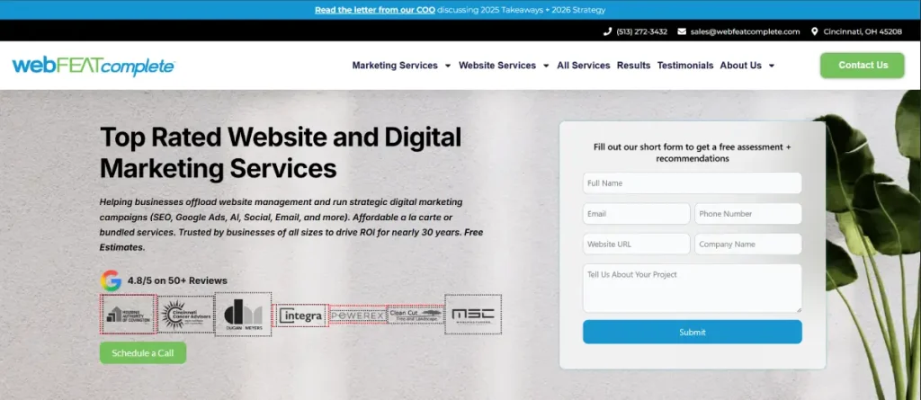 webFEAT Complete is a Cincinnati-based agency that stands out for its consistency, affordability, and long-term client relationships. When evaluating web design agencies in Cincinnati, webFEAT is often considered by local businesses that want reliable Cincinnati website design paired with practical SEO and digital support without enterprise-level pricing.