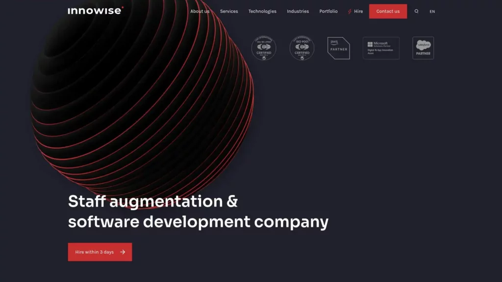 - Innowise Group – Best for large-scale web development paired with strong engineering depth