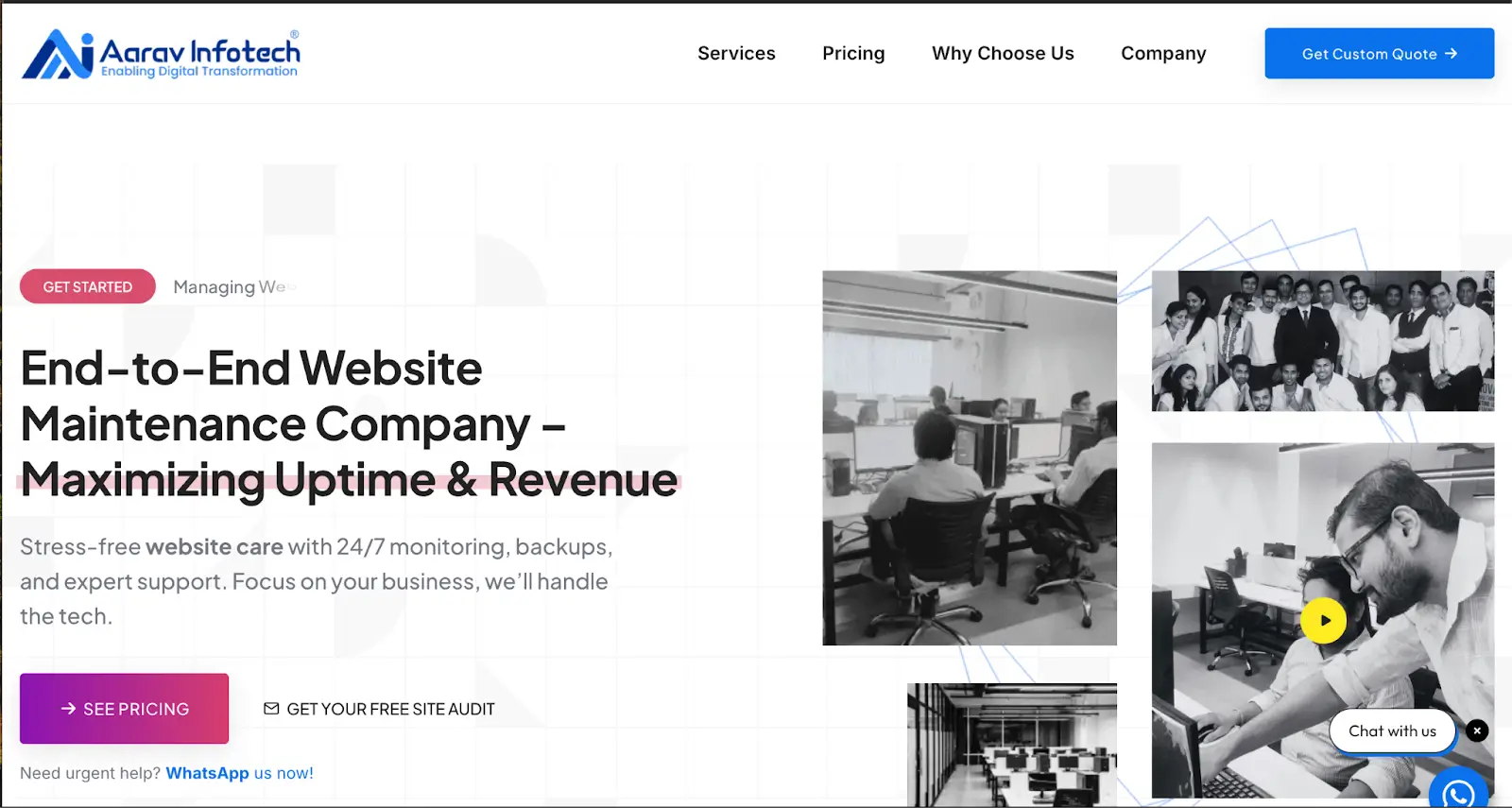 Aarav Infotech is a dedicated Website Maintenance company that combines design, performance, and support into one seamless offering. With over a decade of experience, the agency is known for helping small to mid-size businesses stay online, secure, and optimized.