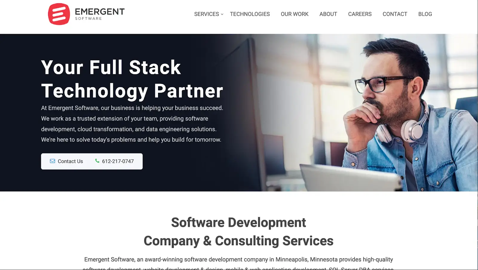 Emergent Software is a Minneapolis-based agency known for its technical excellence and structured approach to software support. Their website maintenance services are ideal for businesses that run on Microsoft Azure or require rigorous DevOps practices and database-driven platforms.