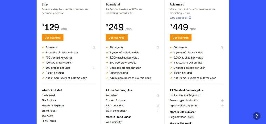 | Ahrefs | Backlink analysis and competitor research | Largest backlink index, content explorer, backlink gap | $129/month | Best raw backlink data we’ve used |