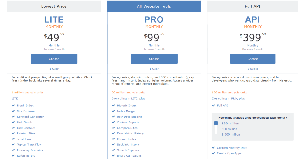 | Majestic | Deep backlink index and trust analysis | Trust Flow, Citation Flow, historic index | $49.99/month | Unmatched for raw link data depth |