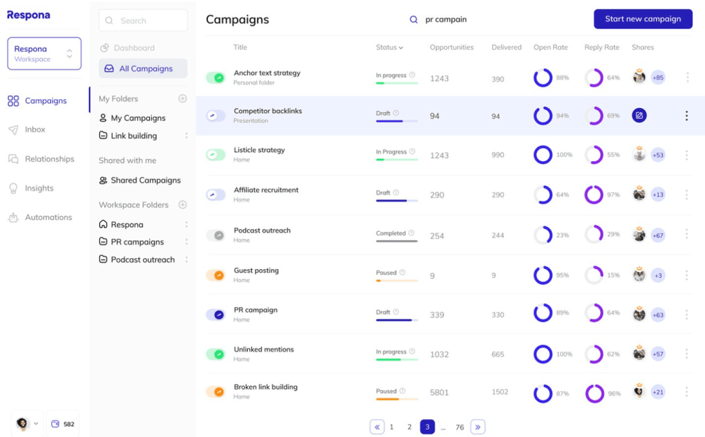 Best For: Link building teams and digital PR agencies that need a dedicated outreach CRM to manage prospect relationships, coordinate team outreach, and track campaign performance across multiple projects.
