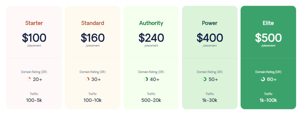 - Elite: $500/placement