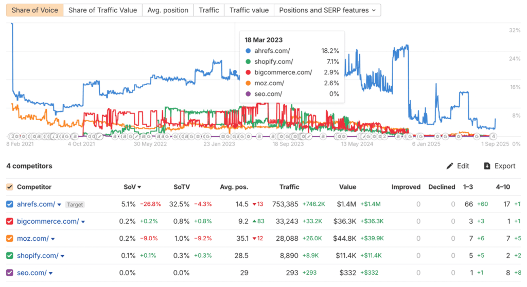 Winner: Semrush Sensor gives you real-time volatility tracking across industries that Ahrefs simply doesn’t offer. Ahrefs helps you understand what happened after an update, but Semrush helps you react while it’s happening.