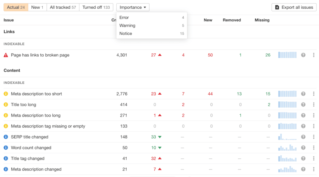 - Always-On Site Crawl: Ahrefs crawls your site continuously rather than waiting for scheduled audits, catching technical issues in real time before they compound.