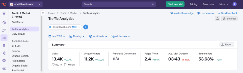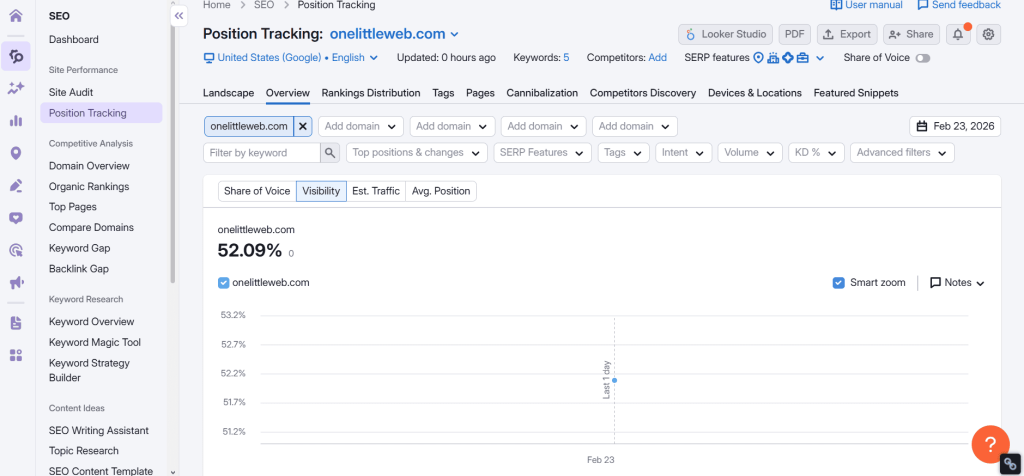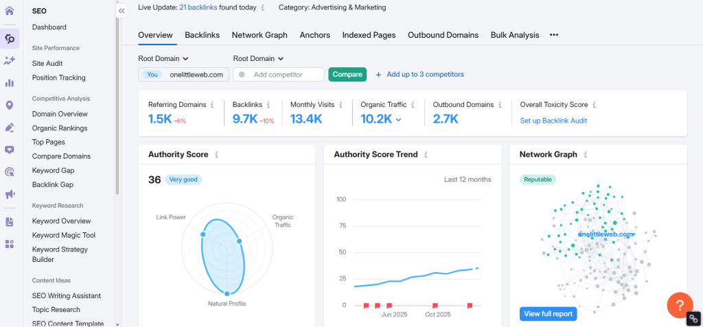 Today, it covers SEO, PPC, content marketing, social media, competitor analysis, and now AI visibility tracking, all from a single dashboard. It’s the kind of tool that removes the need for 5 separate subscriptions.