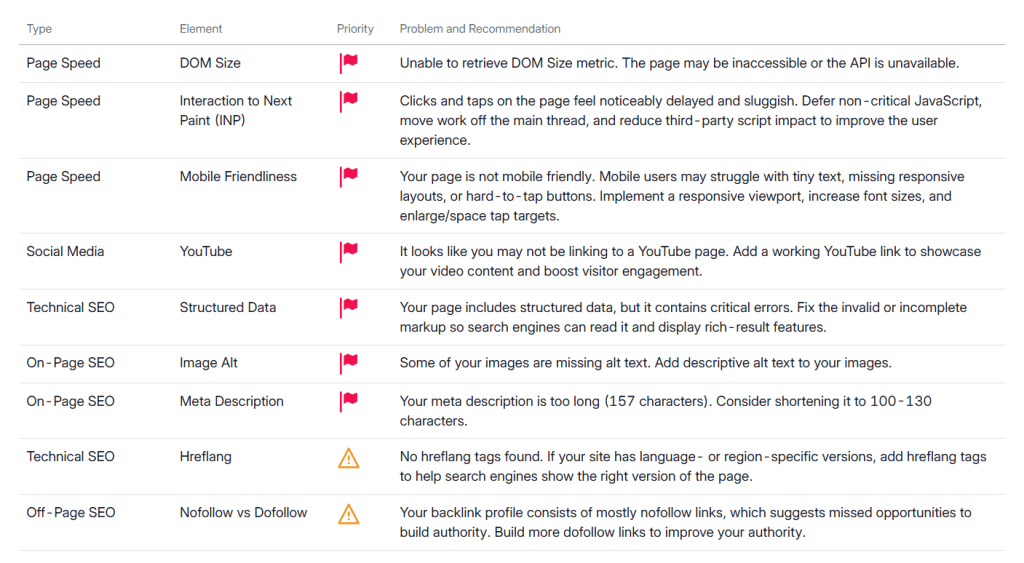 - Comprehensive site audit with technical SEO recommendations.